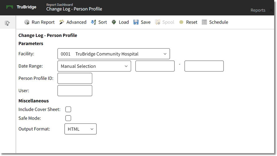 Select Web Client > Report Dashboard > Change Log - Person Profile