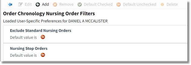 | • | Nursing Stop Orders is an additional default filter available. The filter will include Nursing Orders placed with a Stop Date. |